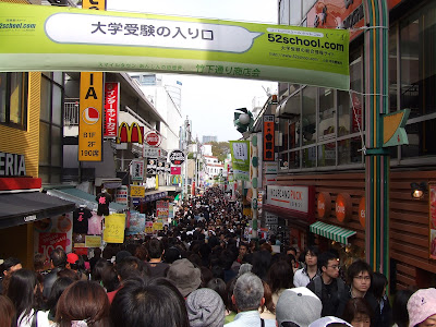 After seeing the temple, the Mr. and I went on a Sunday stroll through Harajuku. It also seems that thousands of Tokyoites and German tourists had the same idea. The streets were crowded, to say the least and Juan and I fought our way thought the little streets full of cheep fashionable shopping for the youth of Tokyo.After our walk through Harakuju we headed onto Omotosando Dori. Omotosando Dori has become renowned for it's sheik shopping stores and ritzy sidewalk cafes. So as we walked by names such as Coach, Louis Vuitton, Prada, etc... we saw girls in expensive clothes drag their husbands, boyfriends and lovers into these high end fashion retailers with the hope that they would be walking out with something pretty and overpriced. I have to admit that I only became weak to the theory of overpriced retail therapy when we passed by the Tods window. I have always been a sucker for their classical styled shoes and handbags.